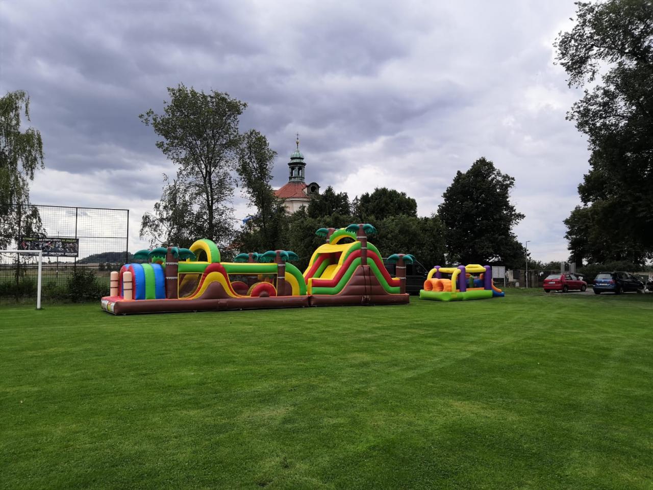Během vystoupení kouzelníka nás dostihl déšť, který nakonec ustal a pak už nic nebránilo tomu, aby si děti pořádně zařádily a zasoutěžily.